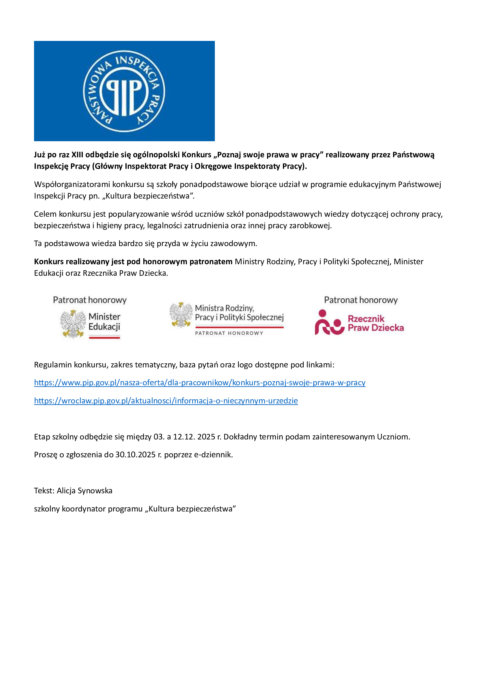 KONKURS „POZNAJ SWOJE PRAWA W PRACY”