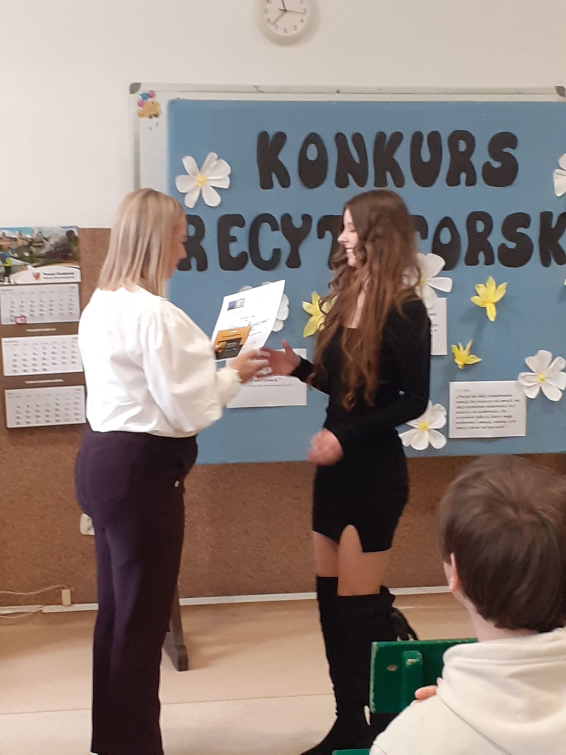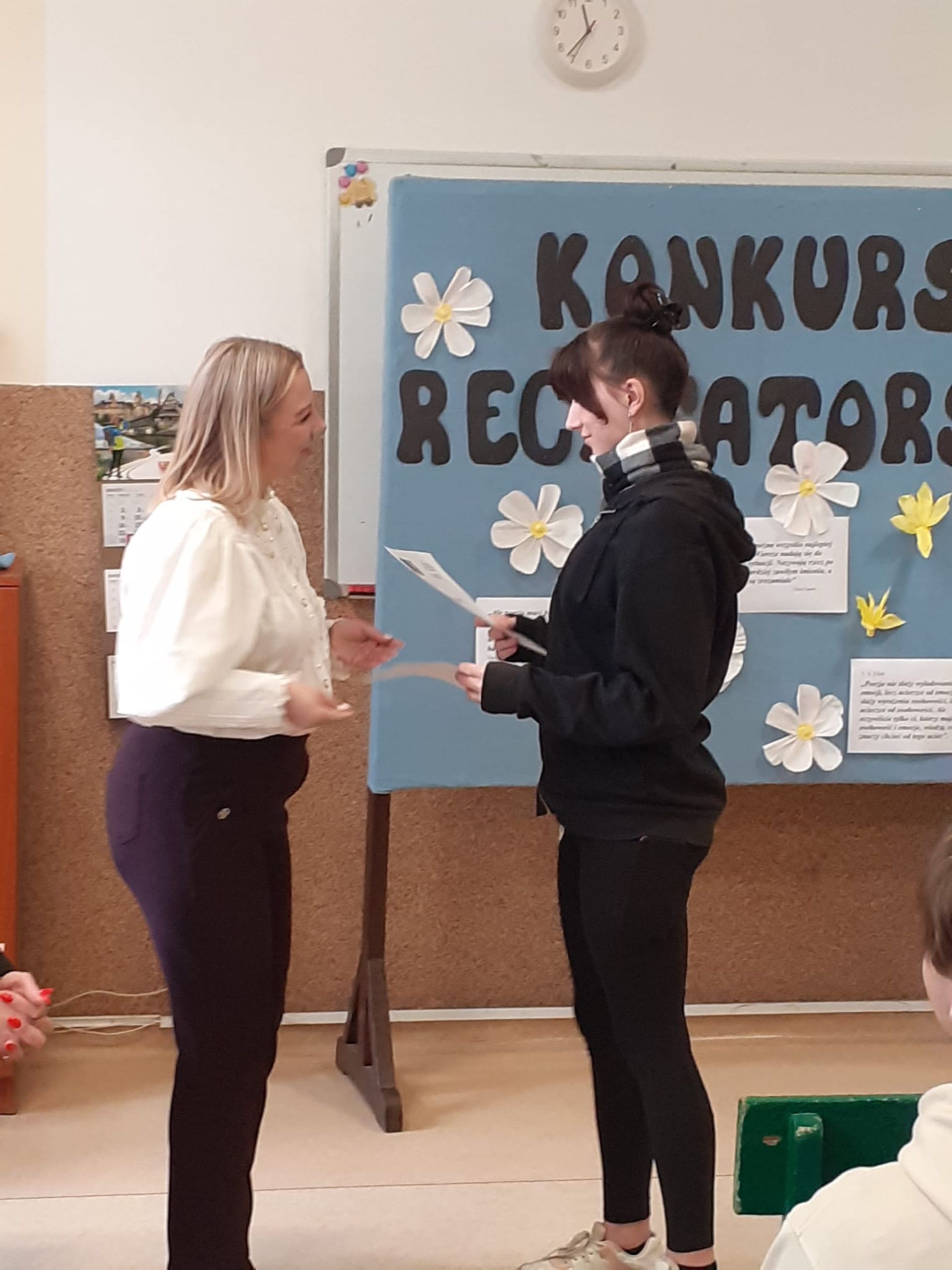 Laureaci konkursu będą reprezentować naszą szkołę w eliminacjach miejskich Ogólnopolskiego Konkursu Recytatorskiego.